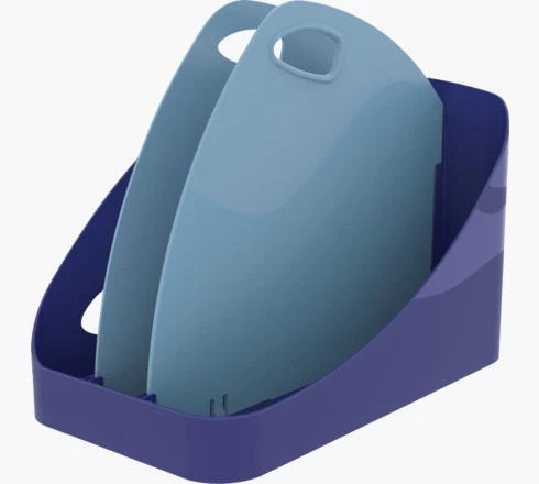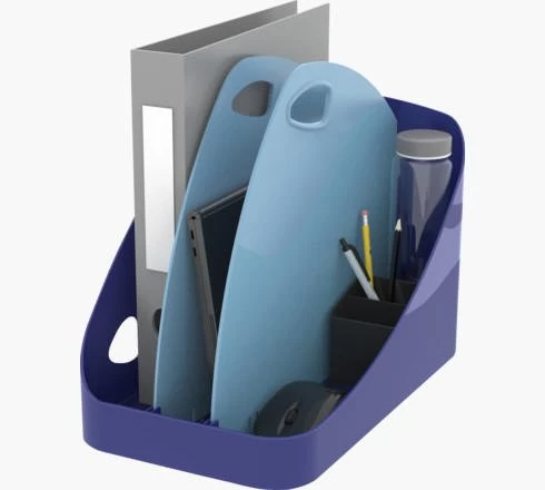 This environmentally friendly lightweight desktop sorter is made from 100% recycled plastic, featuring three sections to store desktop accessories both large and small. Ideal for small objects such as pencil pots along with A4+ lever arch files and more, the durable, brightly coloured sorter is supplied in blue.
