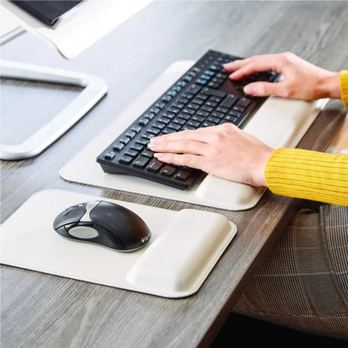 Premium real leather wrist supports with stylish and minimalistic design and stitching detail. Memory foam cushioned support helps to relieve aches and strains when typing.