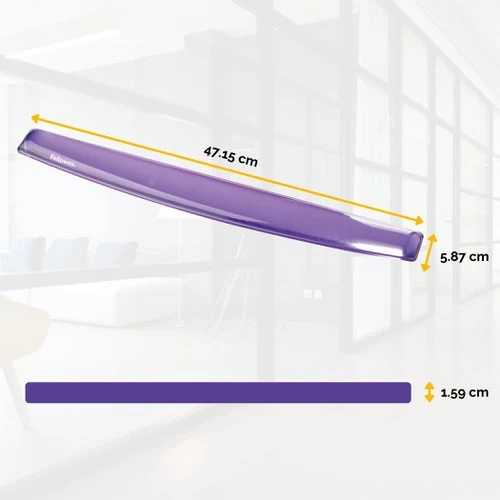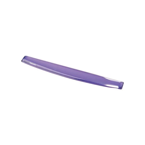 This Fellowes Crystals wrist rest features a soft gel padding with a stain resistant, wipe clean polyurethane cover. The ergonomic design supports the wrist, helping to alleviate pressure and provide comfort. The wrist rest also features a non-slip backing. This pack contains 1 wrist rest in purple.
