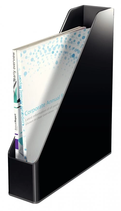 This premium quality Leitz Magazine holder is the perfect place to store important documents, catalogues, magazines and more. A stylish storage solution for your shelf or desk. The Leitz desktop collection in dual colour black and antrazite is a representative statement of personalty. Minimalist and exclusive with a stylish use of shape. The unique look of this collection is an expression of your sense of style.