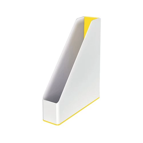 This Leitz WOW Magazine File features a stylish metallic dual colour scheme with a modern and contemporary design. Suitable for documents up to A4 in size, this magazine file has a 73mm spine and is great for storing catalogues, brochures, magazines and more. This white/yellow magazine file measures W73 x D272 x H318mm. Buy any 3 WOW products and claim a free Leitz Cosy Footrest.