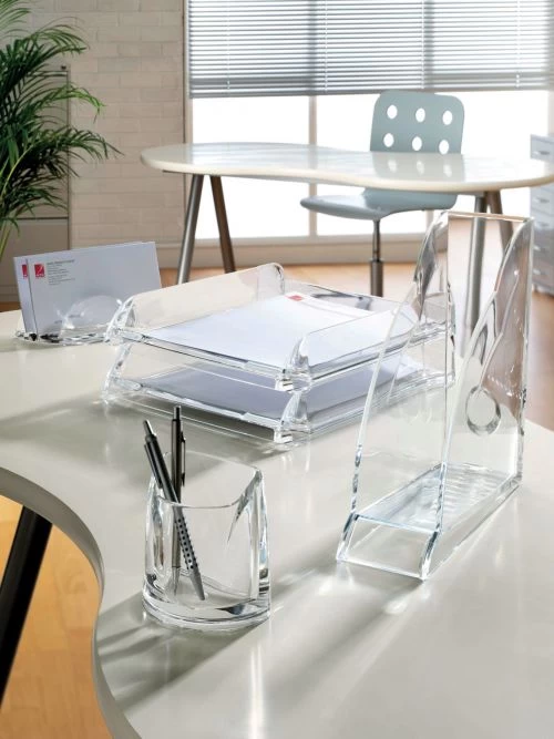 Ideal for storing files, folders, brochures and magazines, the Nimbus Magazine Rack comes with a high quality clear acrylic finish. It has a handy front index tab and a finger retrieval device at the back for easy access to files. Size is 7.7 x 25 x 25.5 cm (W x D x H).