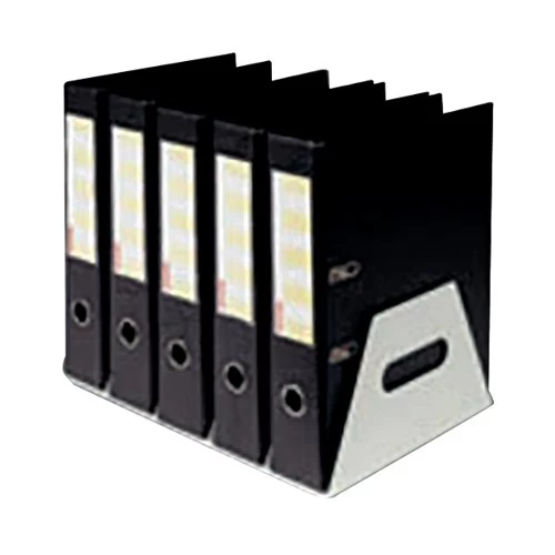 A smart and unobtrusive gun metal filing rack from Rotadex that will organise up to five lever-arch files. Designed to either be attached to a wall or sit on a desktop, the rack presents an ideal way to keep those odd folders looking neat and professional. With non-slip rubber feet to avoid marks and scuffs, you can rest assured your desktop will remain in top condition. Small and sturdy, this is the perfect solution for your personal filing needs.