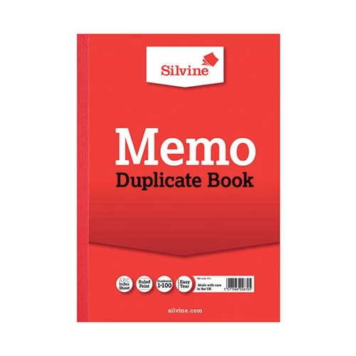 This Silvine Duplicate Memo Book allows you to make 100 duplicate memos to help you keep track of financial transactions. The gummed memo book allows you to make an exact carbon copy, with ruled pages for detailed, accurate records. Each A4 book contains perforated, easy tear pages. This pack contains 6 books.