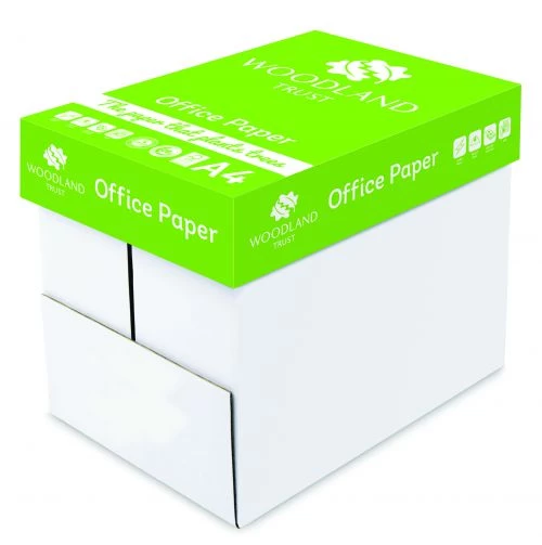 This Woodland Trust high white office paper is completely chlorine free and suitable for use in photocopiers, fax machines, laser printers and inkjet printers. Woodland Trust supports projects that improve biodiversity, enhance social wellbeing and help the UK landscape adapt to climate change. Energy for paper production is generated from waste material with no CO2 emissions from fossil fuels. Also, excess heat from paper production is piped to a community heating project. This pack contains 2,500 sheets of 75gsm A4 paper.